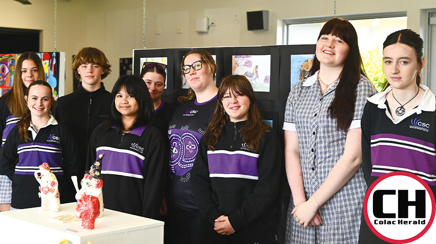 HARD WORK PAYS OFF: Colac Secondary College students were proud to demonstrate their artistic talent in an art exhibition at the Farm My School build-a-farm weekend.