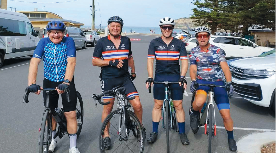 Colac Cycling Club members Mark Purdie, Tony Prytz, Andrew Cox and Mark Flett at the start of the Port Campbell to Warrnambool race.